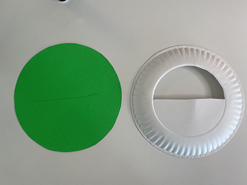 step 2. Trace your paper plate on a green sheet of paper and cut it out in the shape of your plate.