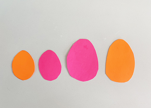 step 4. Cut out 4 egg shapes. 2 large and 2 small (I used orange and pink paper)