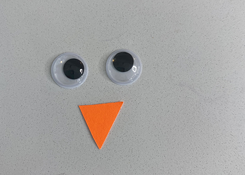 step 7. With the folded strip of pink paper, cut out an imperfect circle (eyeball it) and glue it as nose.