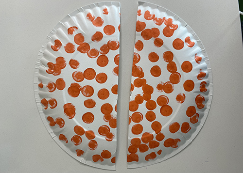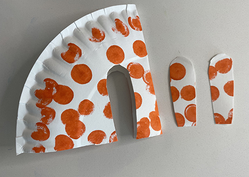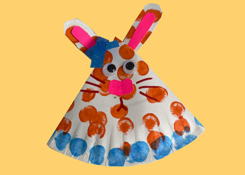 step 3. While the plate is drying, cut out bunny ears with the other half of the paper plate. Fold it and cut out bunny shape ears so you have two identical ears.
