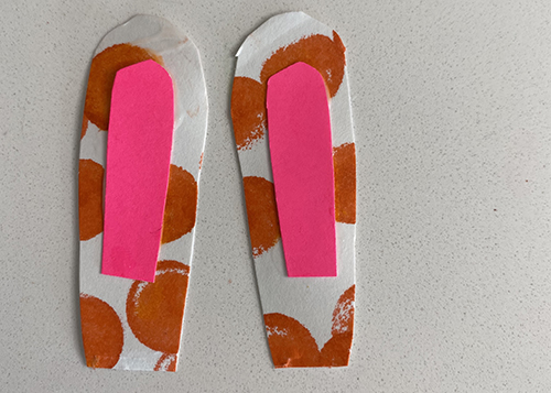 step 5. Glue all together. Make sure to leave space at the bottom of the ears to glue to bunny body.