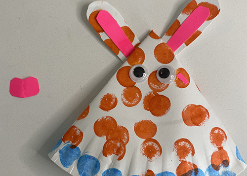 If your toddler has a very short attention span for crafts, glue the body of the bunny ahead of time.