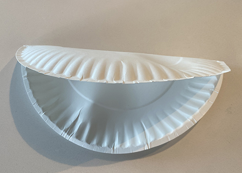 step 1. Draw a line across the center of the plate then cut out a window in the shape of a half moon.